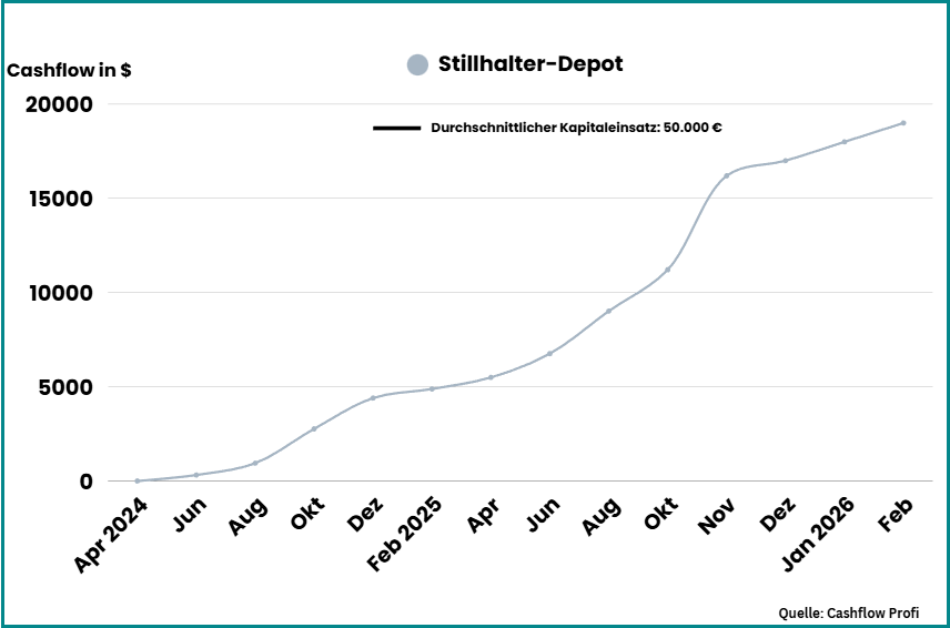 Beachte dazu im nachfolgenden Chart, wie steil die Cashflow-Kurve des Stillhalter-Depots ist.