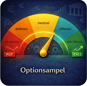 Die Optionsampel steht auf offensiv, aber nicht auf maximaler Eskalationsstufe. Das Umfeld belohnt strukturierten Prämienverkauf, verlangt jedoch weiterhin sauberes Risikomanagement.