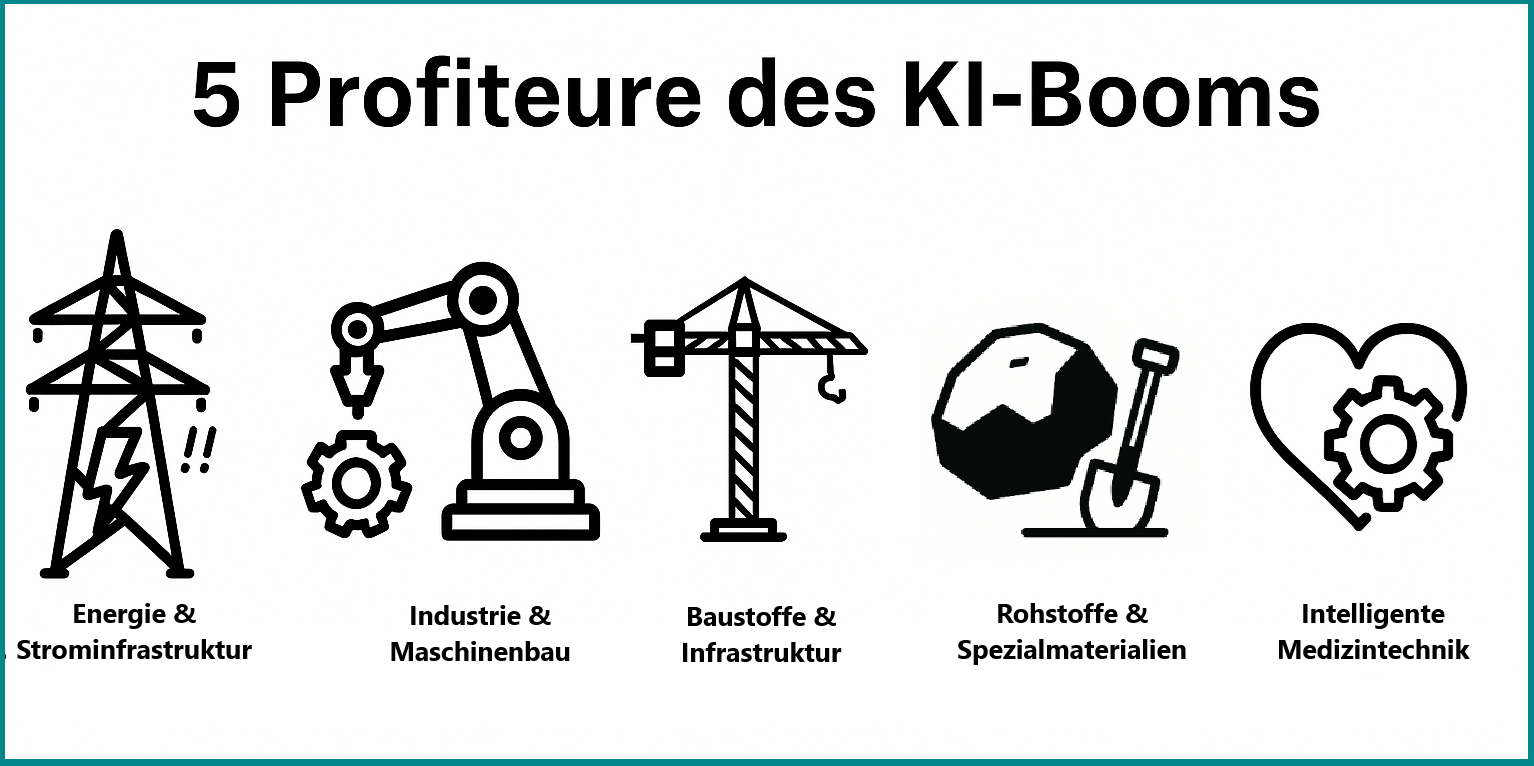 Das Gute ist: Du musst gar nicht direkt in die KI-Unternehmen investieren, um vom Boom zu profitieren. Erinnere Dich an den Goldrausch um 1900: Reich wurden nicht die Goldsucher, sondern die Händler, die ihnen Schaufeln, Ausrüstung und Proviant verkauften.